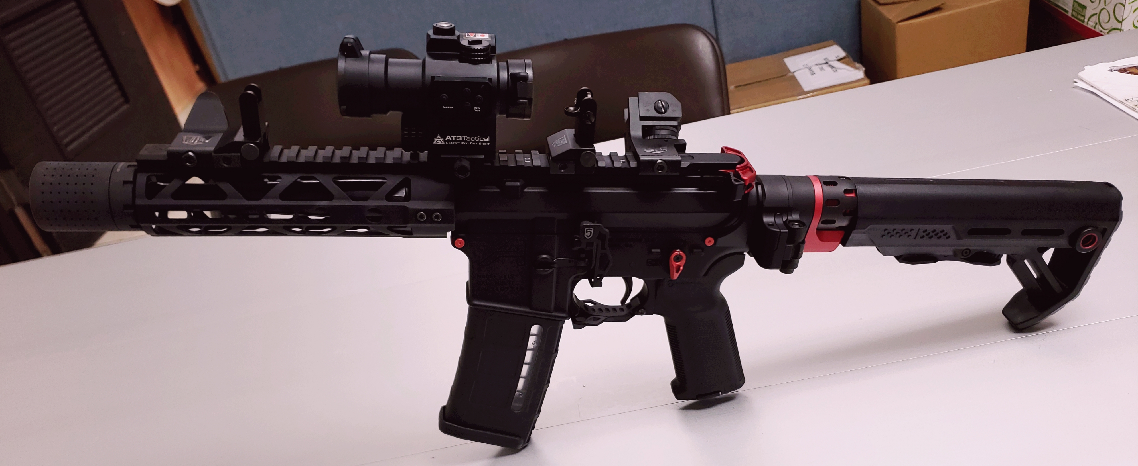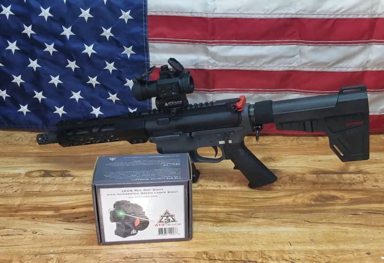 This kit combines the AT3 LEOS Red Dot Sight with Laser Sight, and the