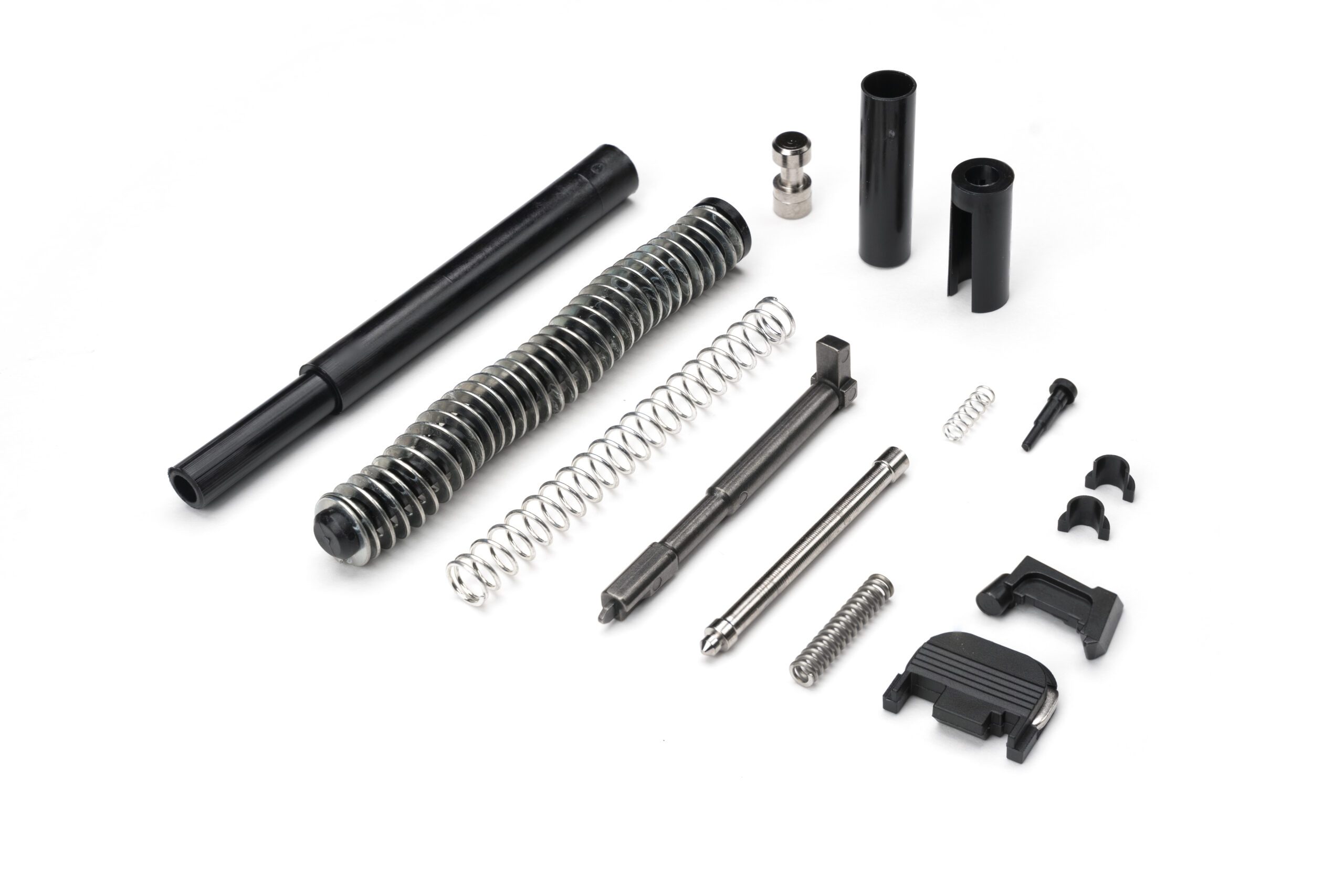 Crafted from high-quality materials like 17-4 PH stainless steel and 4140 steel, this kit ensures durability and reliability. It includes essential parts such as the recoil spring assembly, firing pin components, and extractor with loaded chamber indicator.