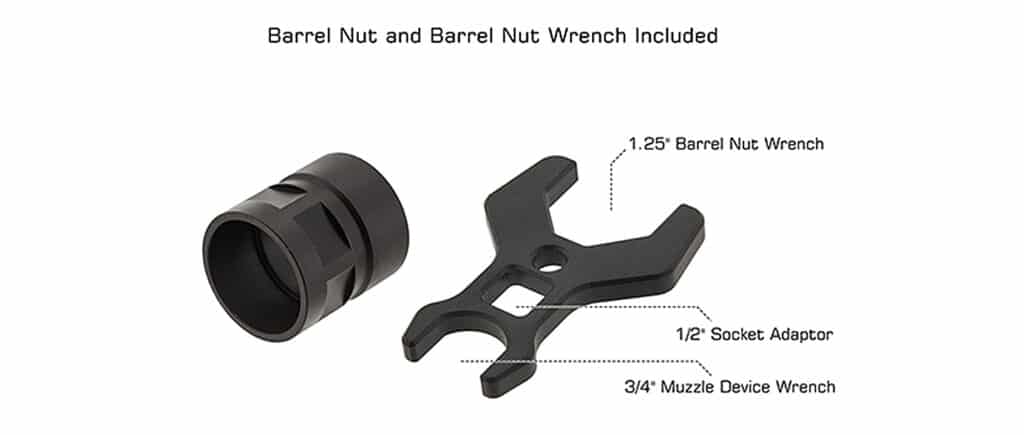 Barrel nut and barrel nut wrench are included.