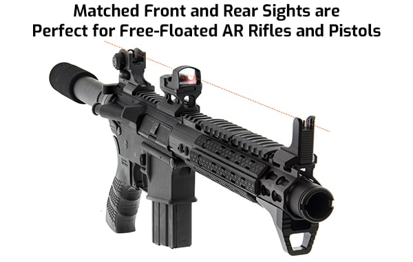 For a full sighting package that won’t fail you, the UTG Super Slim fixed set provides everything you need.  These sights go great on any AR-15 with a free-float handguard, or one equipped with a same-plane picatinny gas block.  Both the front and rear sight come with built-in recoil lugs for a solid zero hold, and improve upon classic AR-15 sight design for modern users.